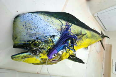 Trolling lures is not only a great way to catch blue marlin—seeing one crash a lure is an unforgettable sight, but also a way to target dorado and sailfish. When there’s tuna around, we’ll put a cedar plug on the shotgun to pick up a yellowfin while trolling.