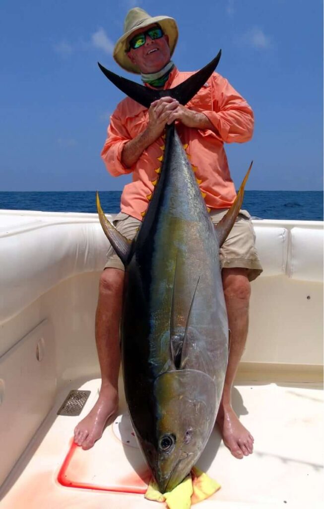 3/20/2016 Panama Fishing Report con’t – The fishing has really been improving daily. We had some great catches including a 750# plus Black Marlin, 200# plus Yellowfin Tuna, and a few real nice Roosterfish! The water temps have cooled down and many different types of bait are starting to show up into the Gulf of Chiriquí. Big pods of Porpoises, with Yellowfin Tuna in tow, are moving up into the gulf feeding on the bait. The action should really start to open up the next few weeks as Tuna time is approaching!