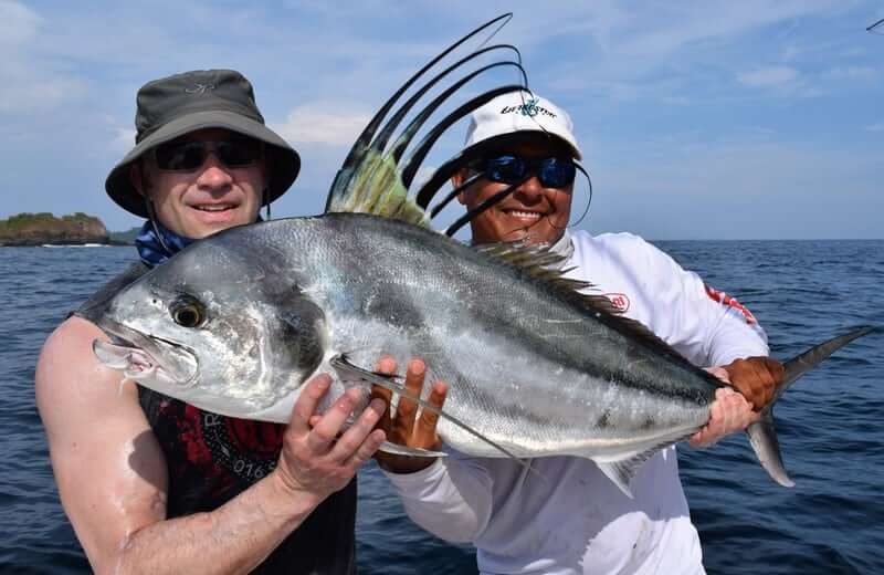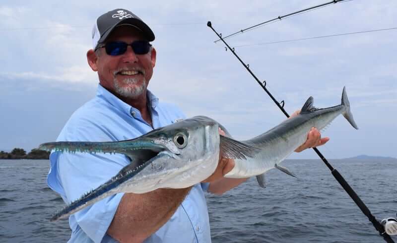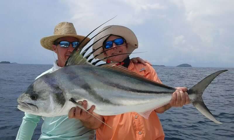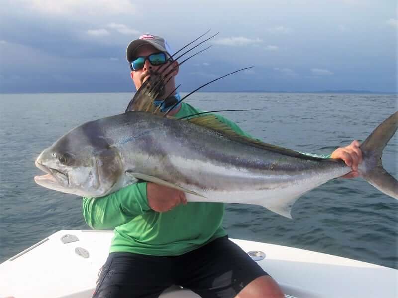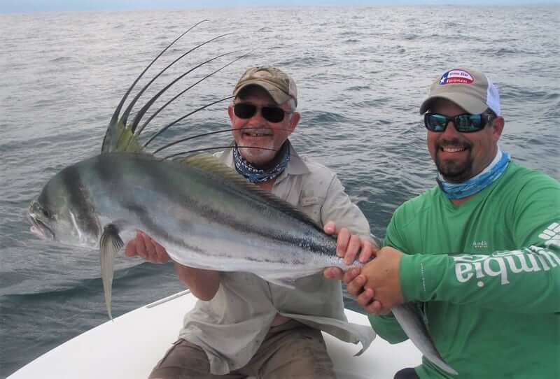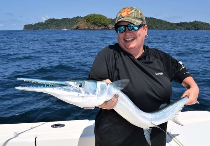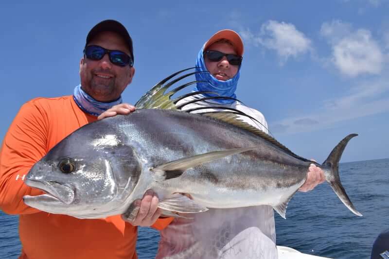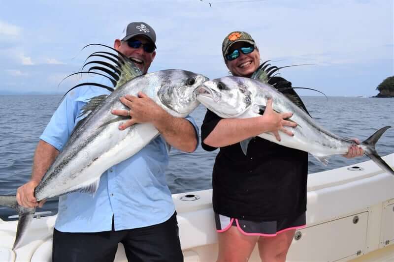 April/2017 Panama Fishing Report con’t – The next group was Heather and Jimmy from Louisiana. These guys should go and buy some lottery tickets cause when they were here they got lucky! We absolutely killed it with these guys! We had one of the best inshore fishing days I have ever had here one day as we caught and released 5 Roosterfish (including a 50 plus pound monster and a double header), a couple of Cubera Snappers (a 45 pound and a 35 pounder), an Ambejack, and monster 20 pound Needlefish! Offshore we got just as lucky! Jimmy caught his first 100 pound plus Yellowfin Tuna on the first day! The following days offshore we slayed the Tunas…Jimmy got a monster 203 pounder and Heather caught a 100 pound Tuna as well! Great trip all around with these guys and really good people!