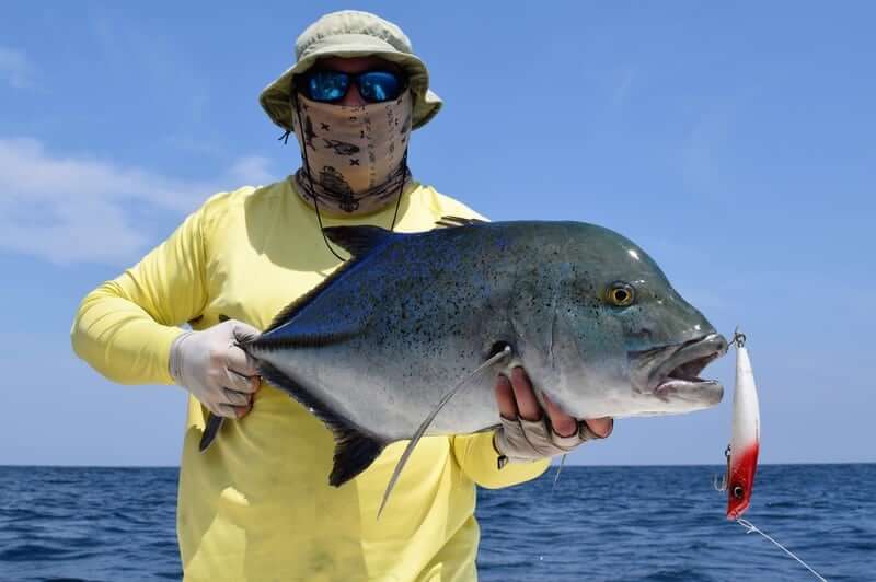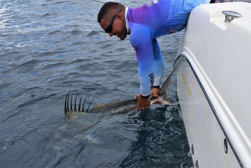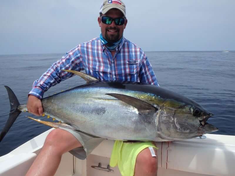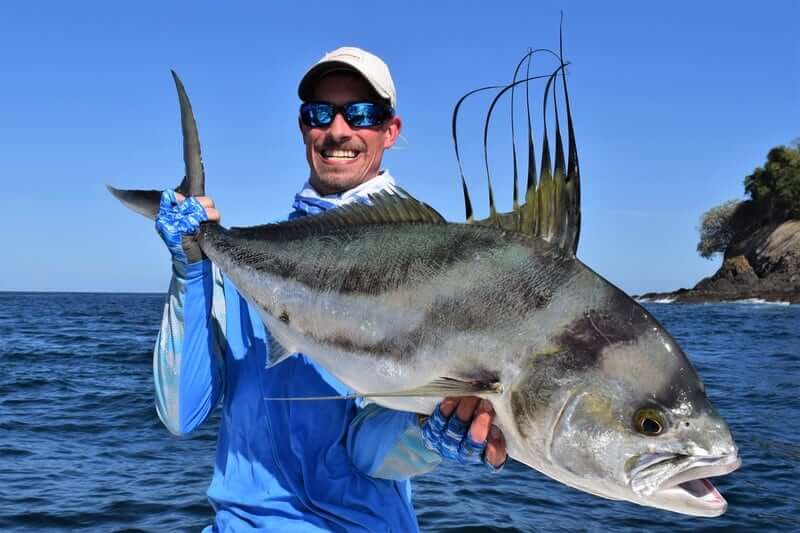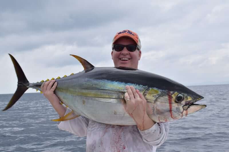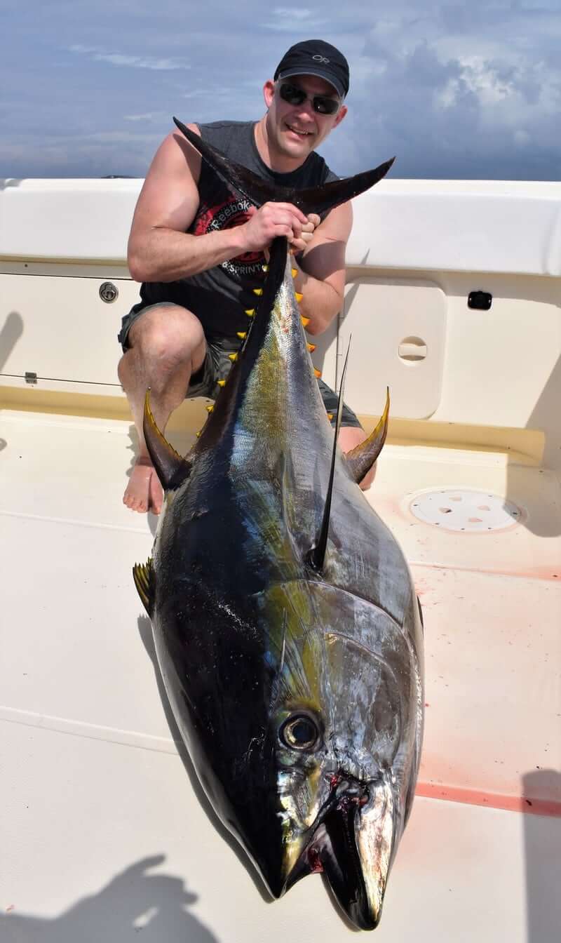 April/2017 Panama Fishing Report con’t – The next group was Heather and Jimmy from Louisiana. These guys should go and buy some lottery tickets cause when they were here they got lucky! We absolutely killed it with these guys! We had one of the best inshore fishing days I have ever had here one day as we caught and released 5 Roosterfish (including a 50 plus pound monster and a double header), a couple of Cubera Snappers (a 45 pound and a 35 pounder), an Ambejack, and monster 20 pound Needlefish! Offshore we got just as lucky! Jimmy caught his first 100 pound plus Yellowfin Tuna on the first day! The following days offshore we slayed the Tunas…Jimmy got a monster 203 pounder and Heather caught a 100 pound Tuna as well! Great trip all around with these guys and really good people!