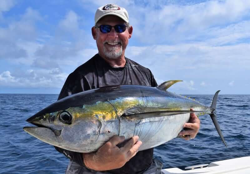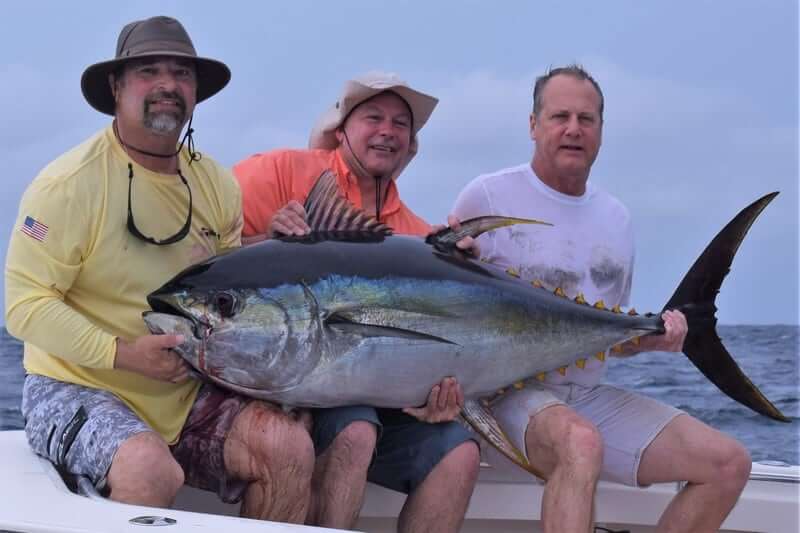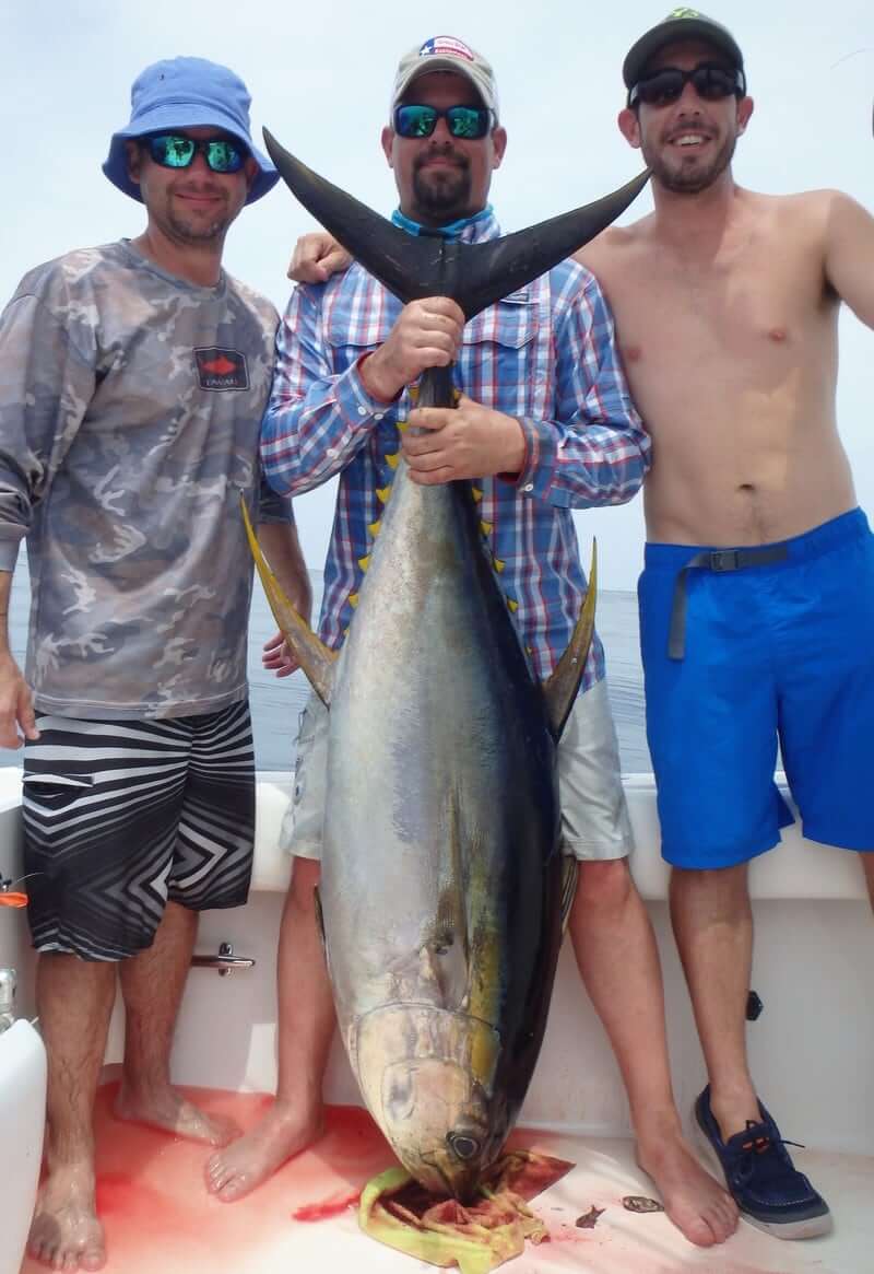 Bill, Tim, and Rick from upstate New York joined us next for seven days of fishing. These guys wanted to try it all and we did! We fished pretty much all the areas around the Gulf of Chriqui here inshore and offshore and counted 12 different species caught! These caught a bunch of fish as they worked hard at casting artificials every chance they had while we were slow trolling live baits or drifting chunks. Bill caught a monster Yellowfin Tuna after a grueling 2 hour battle that went an easy 170 pounds! We had an awesome time with these guys and can’t wait to see them again hopefully next year!