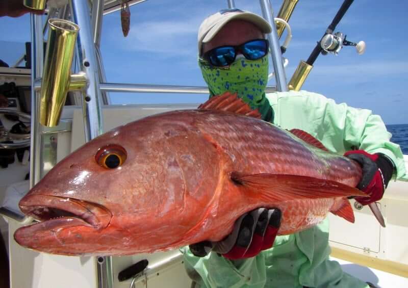 To continue our July/2014 Panama Fishing Report, the second day with the Joyners started out a little rough. Some rain, windy, and the ride was a bit bouncy, but eventually cleared up just as we arrived at Hannibal Bank. Again some big swell but a real nice sea. This time the mark on the sonar was twice as big as the previous day and the action was good! Drift after drift…we hook into more nice size Mullet Snappers and smaller YFTs. We had a triple header then a couple of double headers with constant action! This group did a great job of fighting and controlling their fish amidst all the excitement. I was a bit disappointed as we brought 30 Blue Runners out with us and we were getting short on baits!!!
