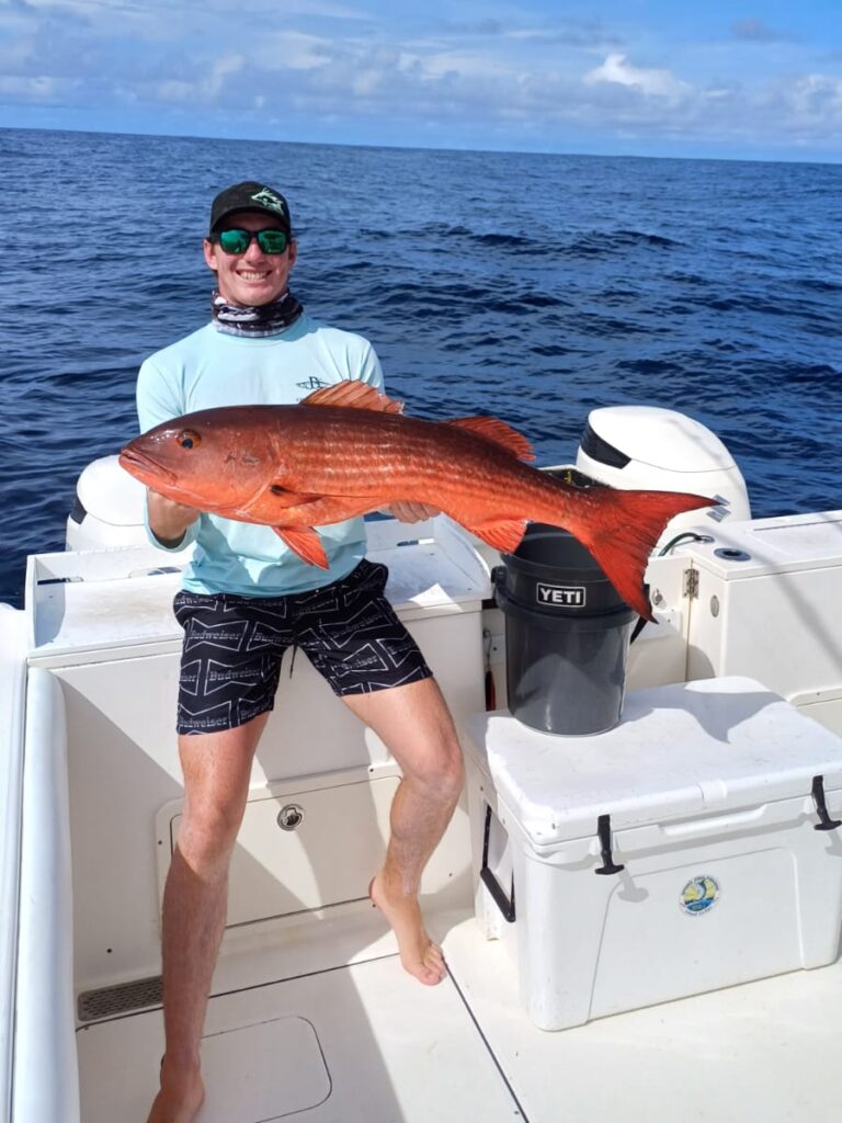 We catch big snapper and tangle with lots of them. Many of our guests come down to try to catch them here—and with good reason. We have a hell of a cubera snapper fishery and we release them.