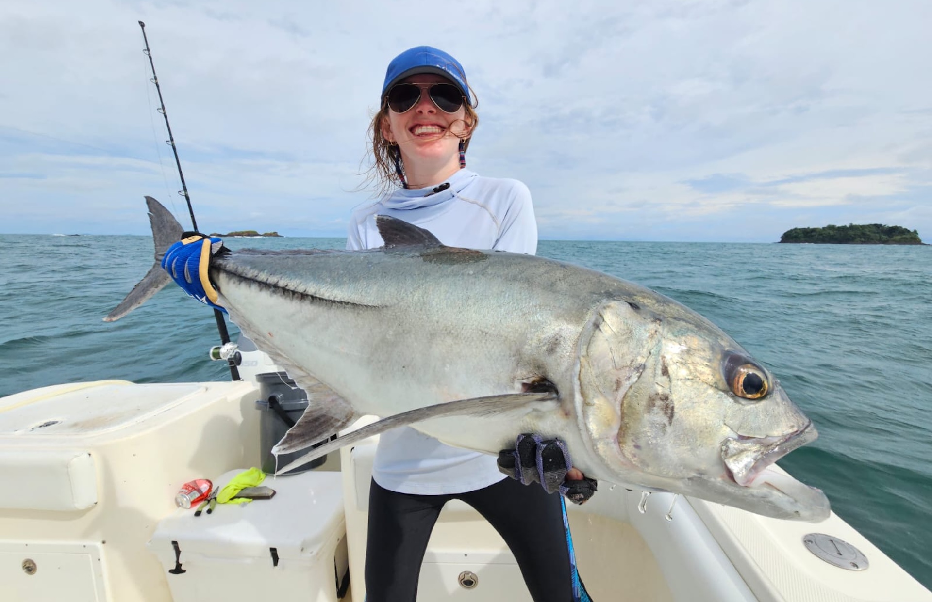 Roosterfish, cubera snapper, mullet snapper, rock snapper, broomtail grouper, bluefin trevally, jack crevalle, horse eye jack, needlefish (giant needlefish that might be 4 feet long!), amberjacks, almaco jacks, hawkfish, and other species of grouper and snapper. We even sometimes catch wahoo inshore.