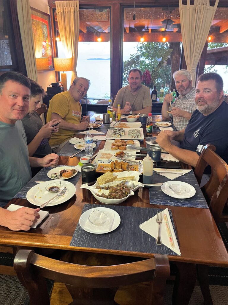 Then there’s the food. If there’s anything that compares with the incredible fishing, it’s happy hour. Then it’s dinner time. Breakfast and boat lunches.
