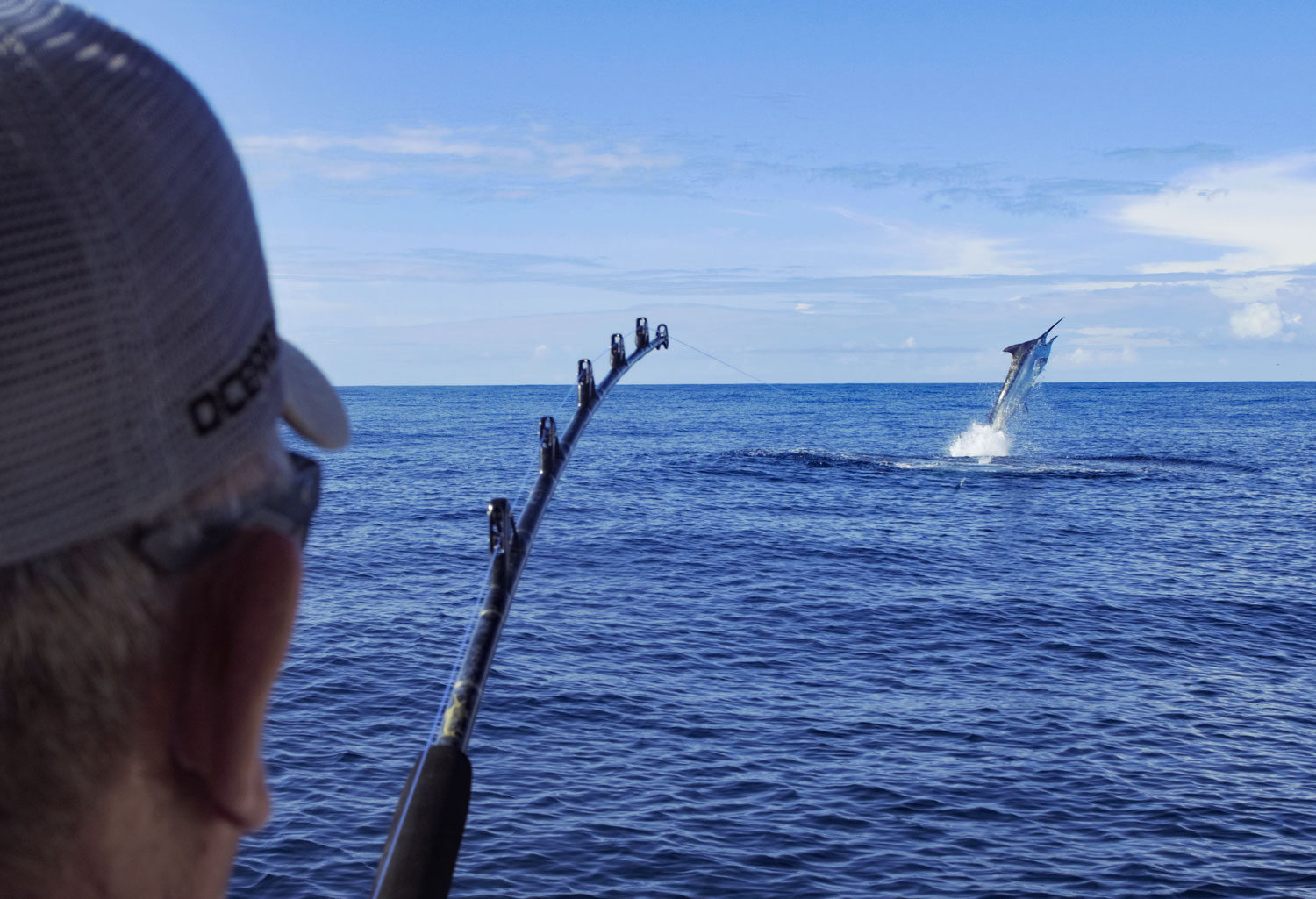 A greyhounding blue marlin, quartering away from the boat as it peels line from a large conventional reel is a sight you will never forget.