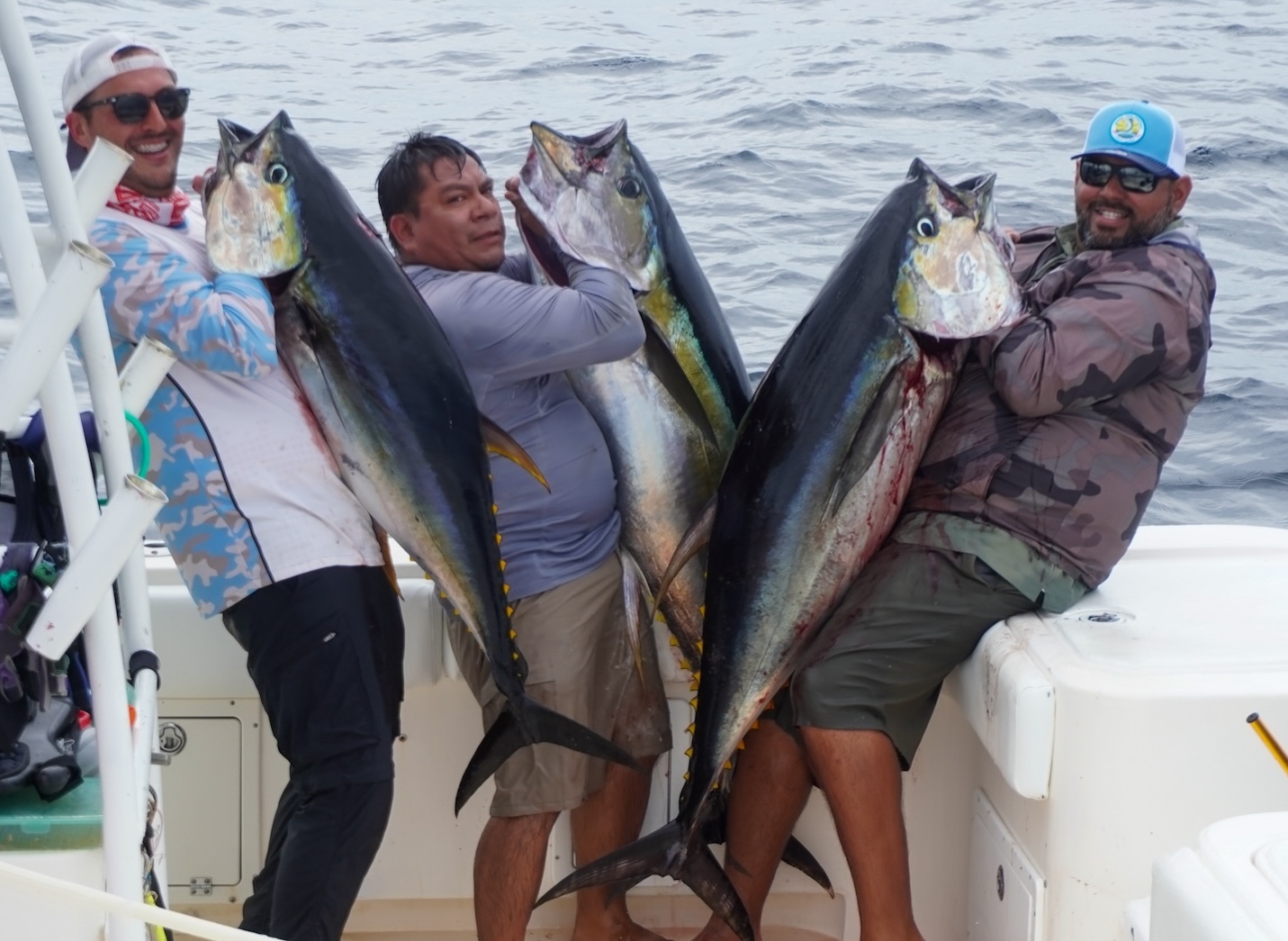 The yellowfin tuna fishing here can be incredible. We catch lots and lots of them. We also catch some true giants—a 290-pounder in February 2025, among many, many others.