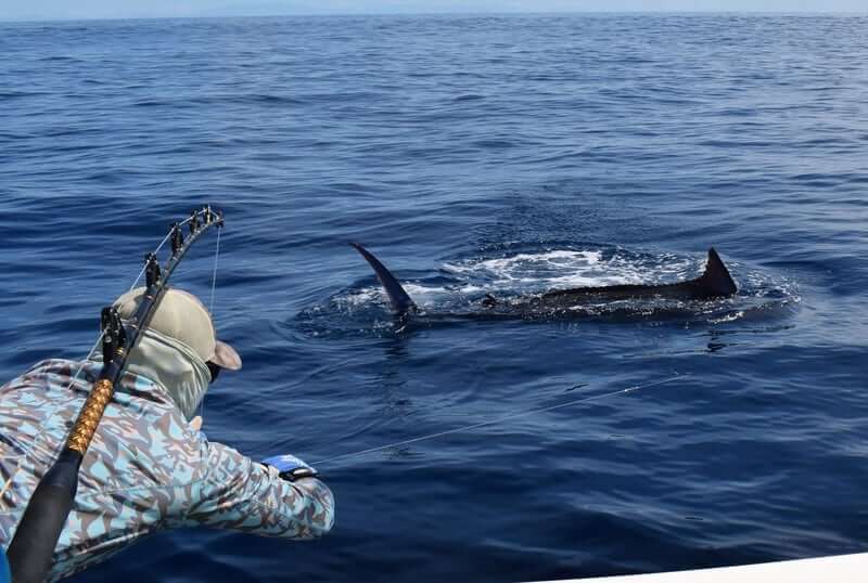 We feed a marlin for five or six seconds. This allows it time to chew the bait, position it within its mouth and swallow it. If there’s resistance during this time, the fish will often let go of the bait.