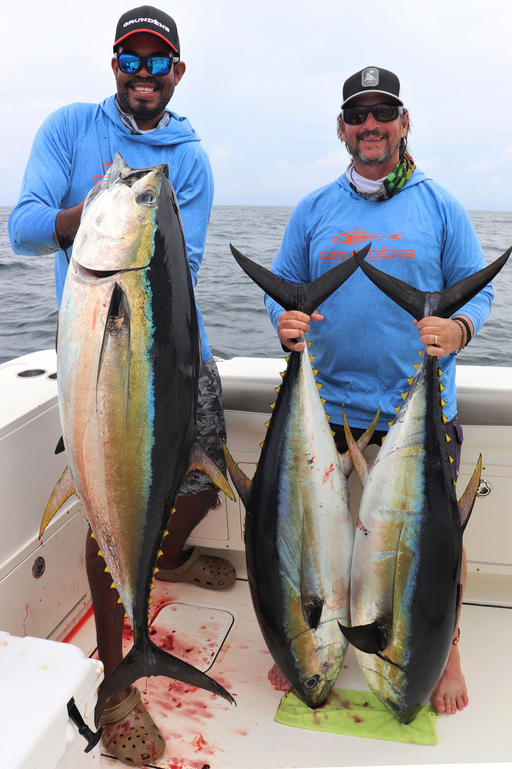 - Tuna fishing: throwing poppers, fishing tuna frenzies, live baiting, chunking, and running and gunning on tuna that are with schools of porpoise.